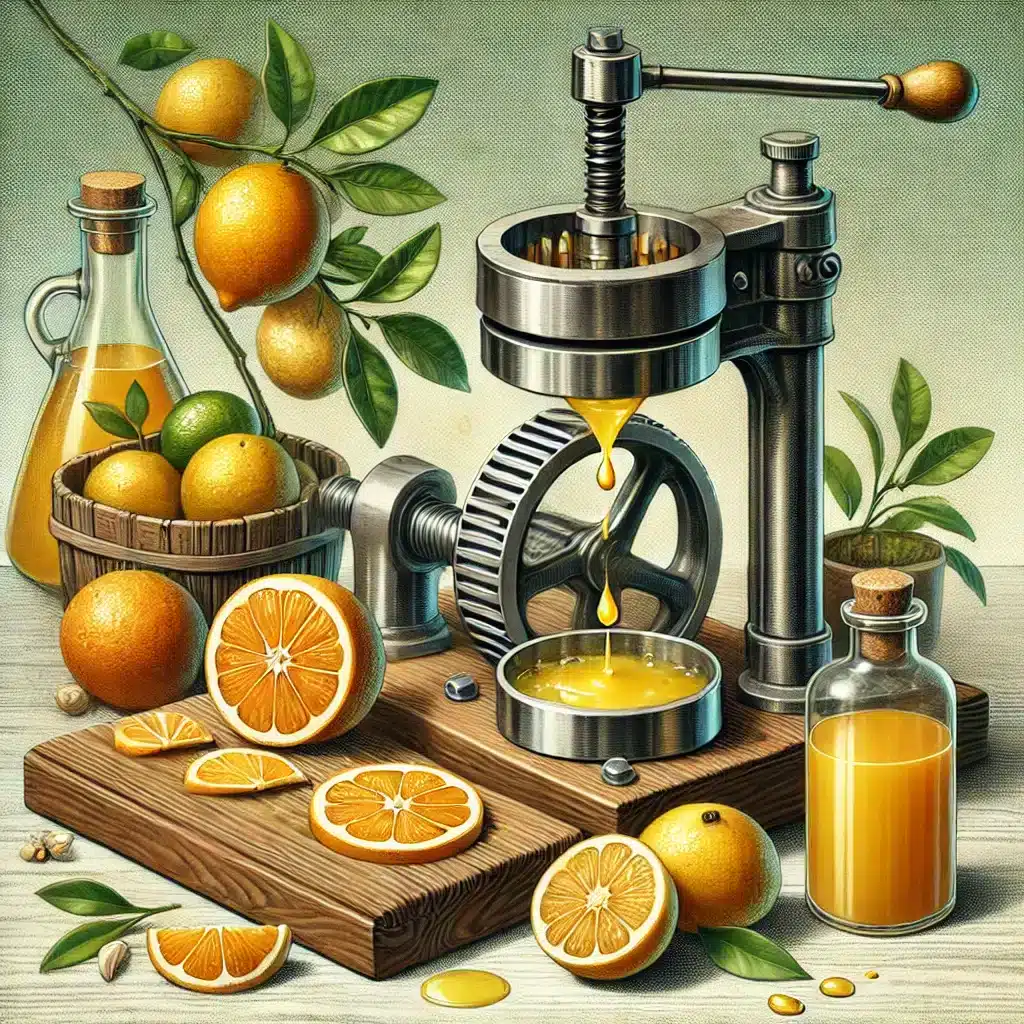 - Método mais comum para óleos essenciais extraídos de cascas de frutas cítricas, como limão siciliano, tangerina, laranja doce e amarga, mandarina, grapefruit e bergamota. A casca é prensada mecanicamente, liberando o óleo essencial e os componentes aromáticos.